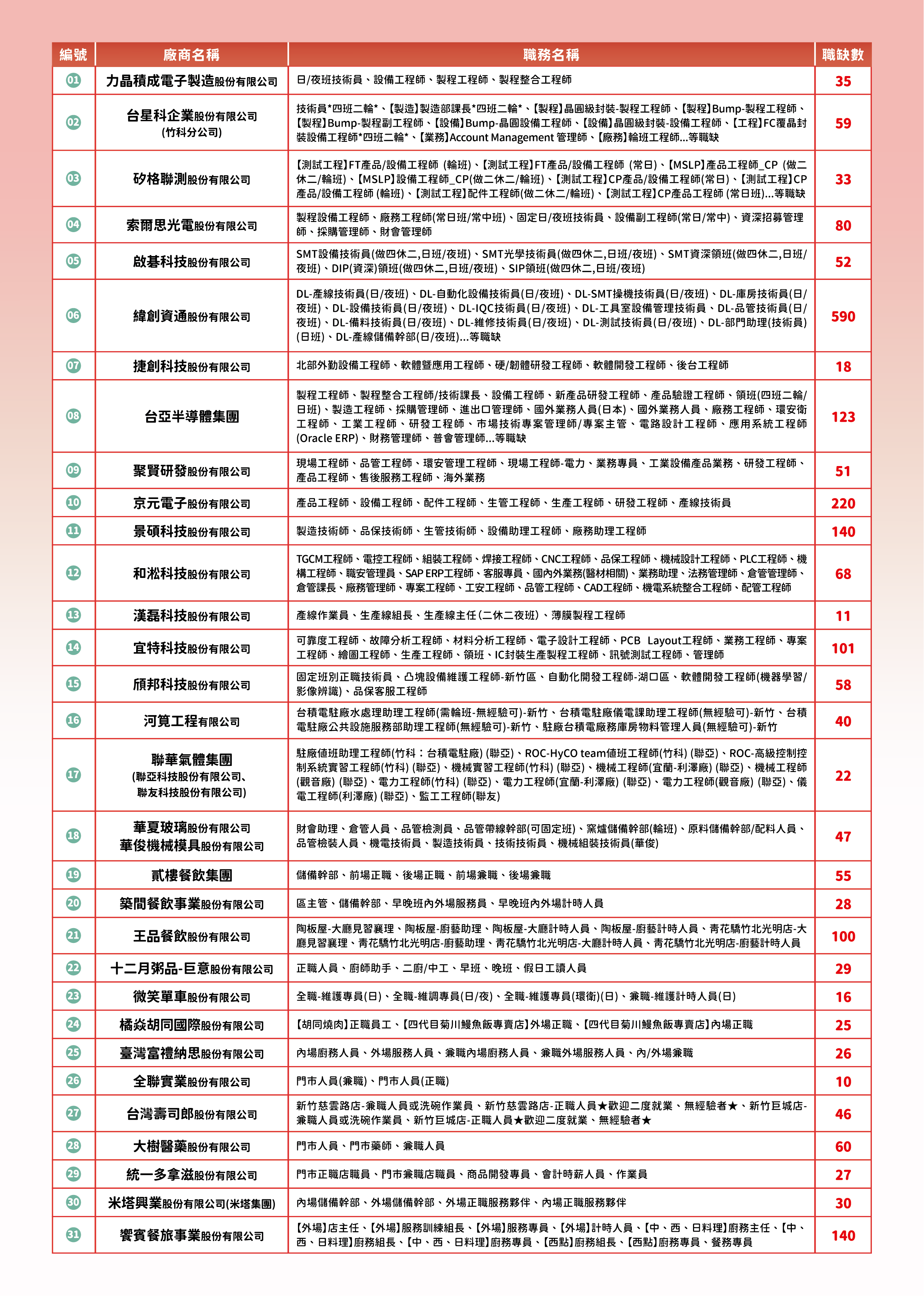 勞動部勞動力發展署桃竹苗分署新竹就業中心2025新竹地區『年前卡位,年後就業』現場徵才活動,將於115年2月5日上午10時至下午3時於新竹市東區區公所3樓大禮堂,共邀請31家廠商,提供2,340個職缺