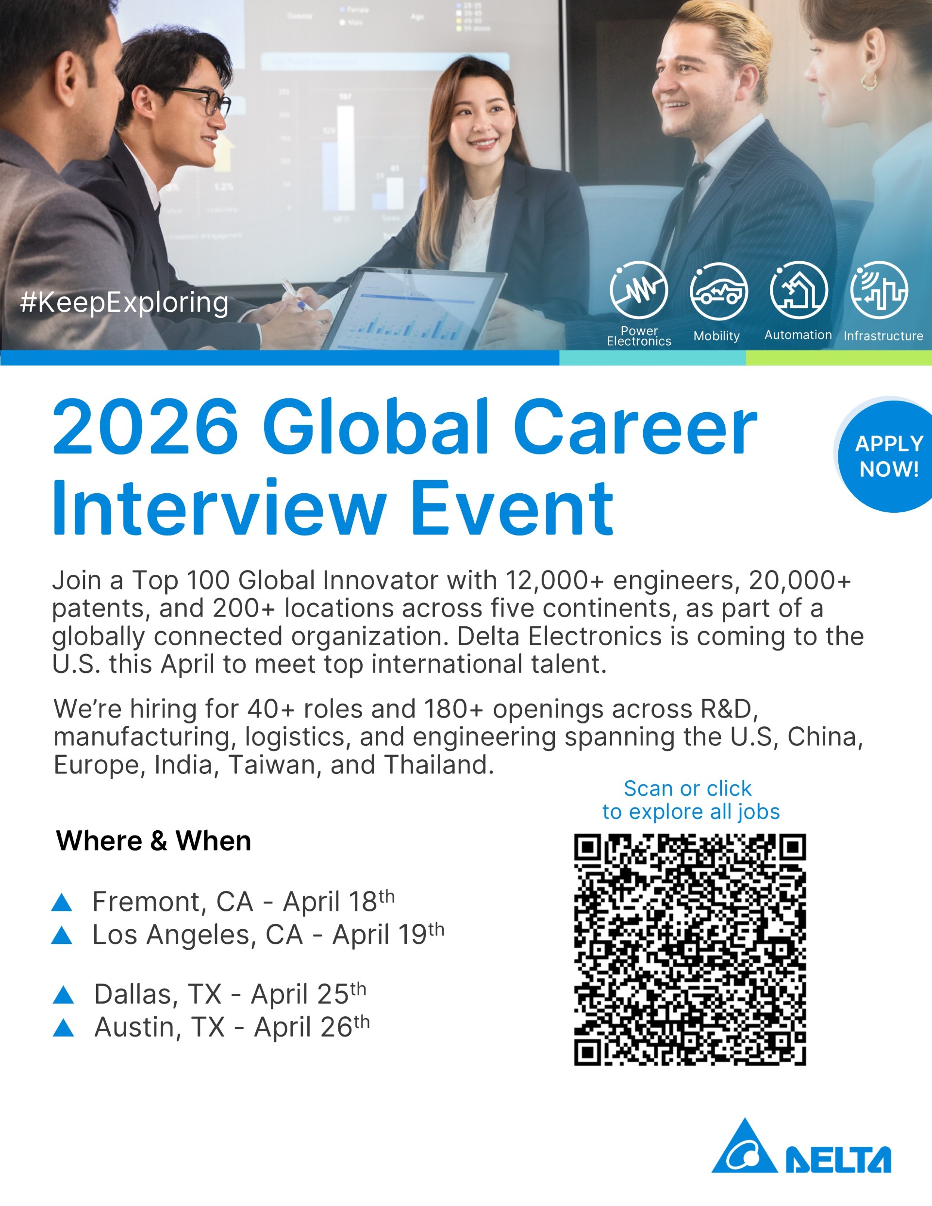 At Delta, we don’t just innovate; we create sustainable solutions for a smarter tomorrow. As a Top 100 Global Innovator, we are looking for bold minds to join our mission.