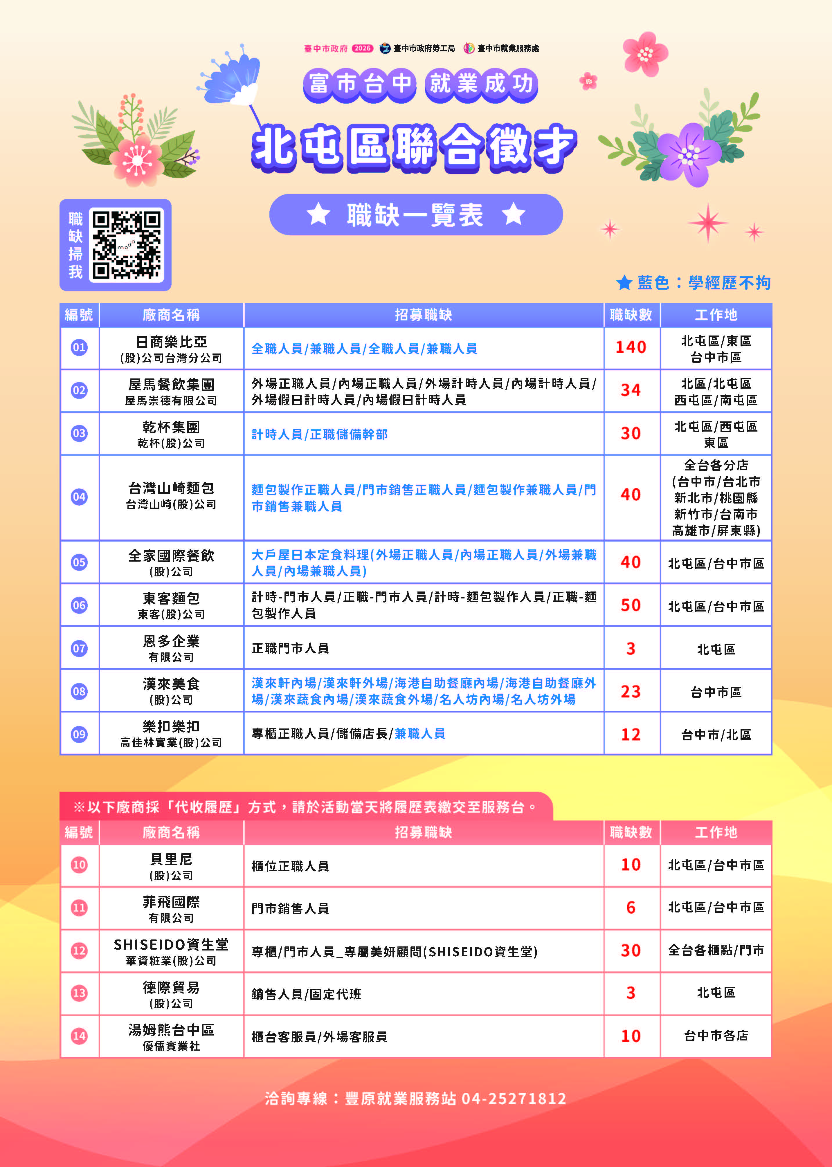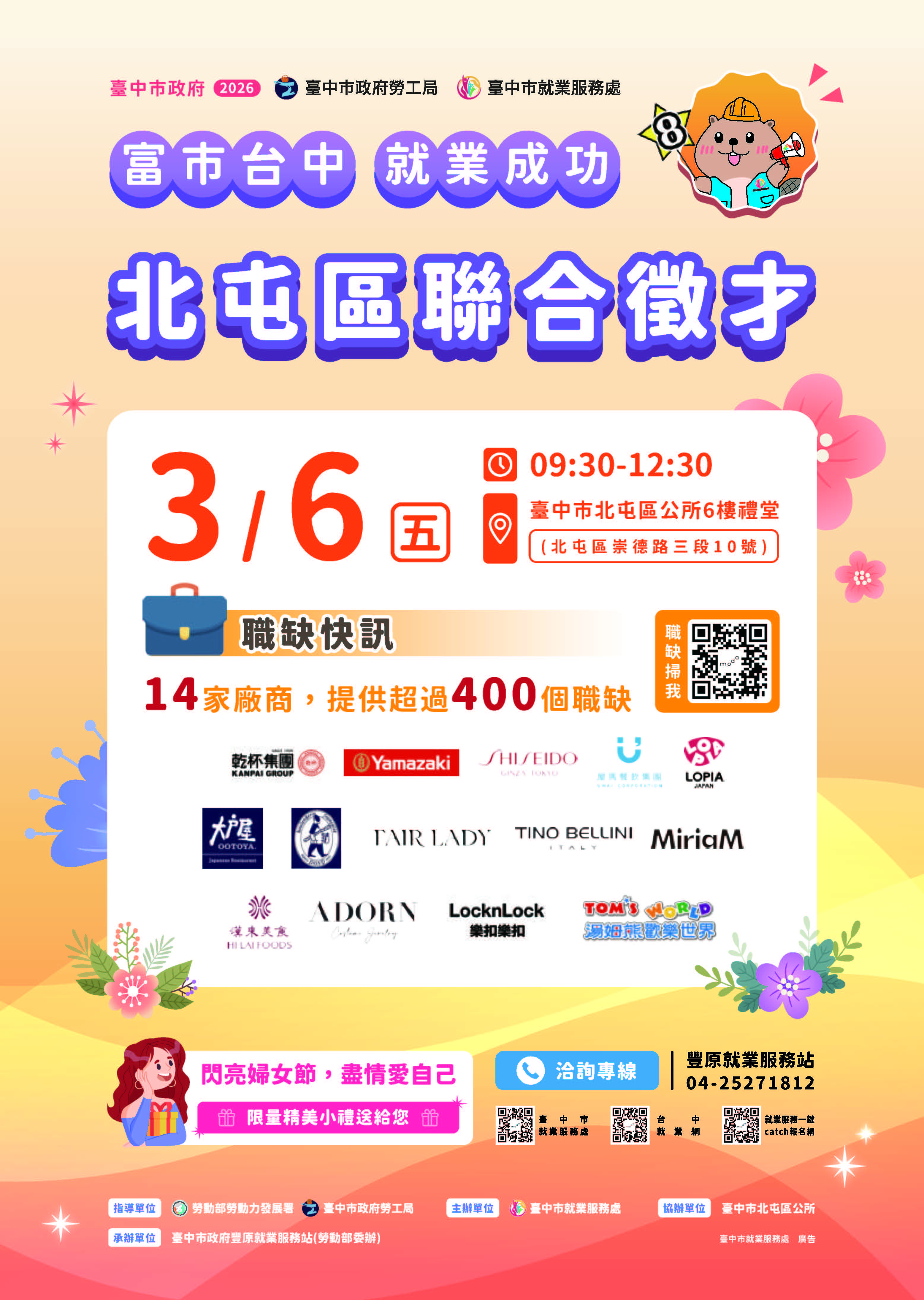 【臺中市政府115年3月6日(五)辦理「富市台中 就業成功」北屯區聯合徵才