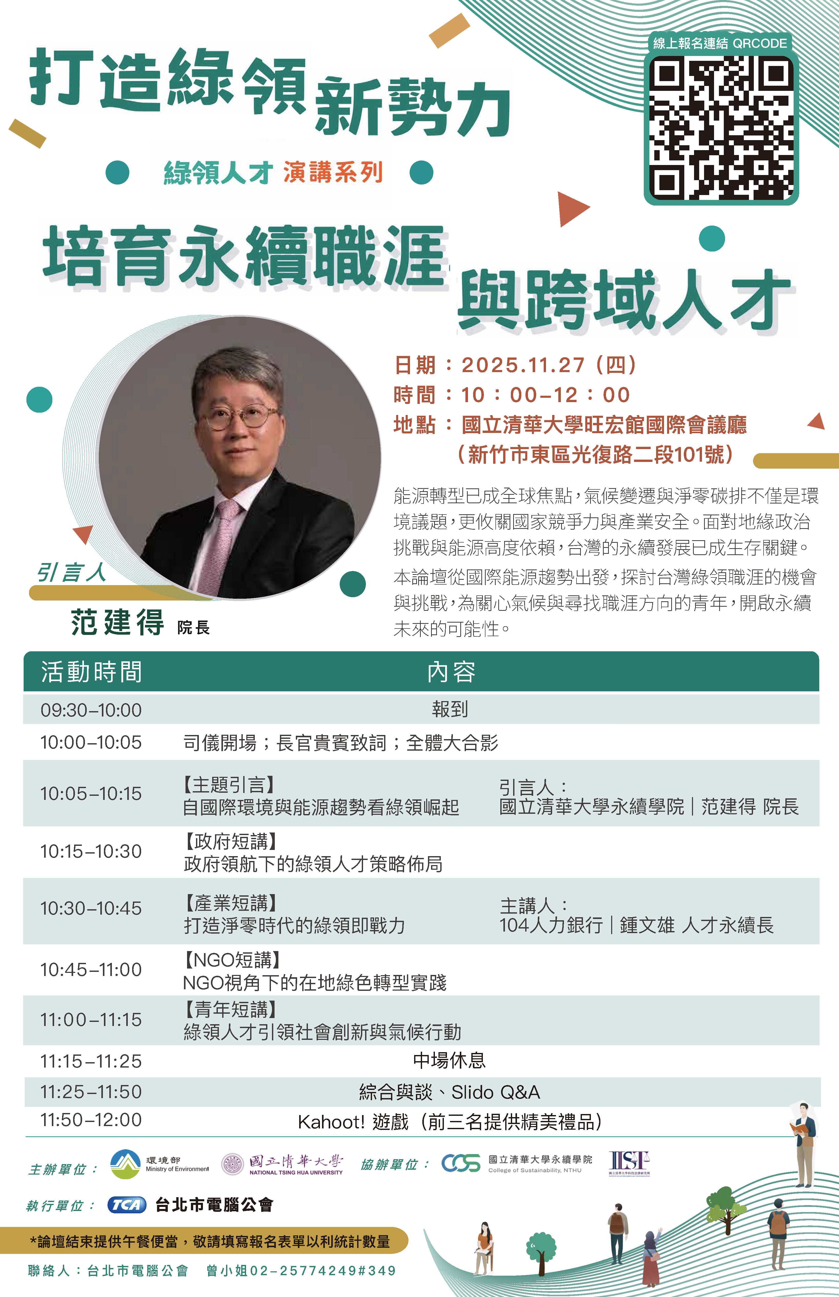 【清華永續學院】環境部青年參與氣候行動系列活動_打造綠領新勢力:培育永續職涯與跨域人才 歡迎報名!