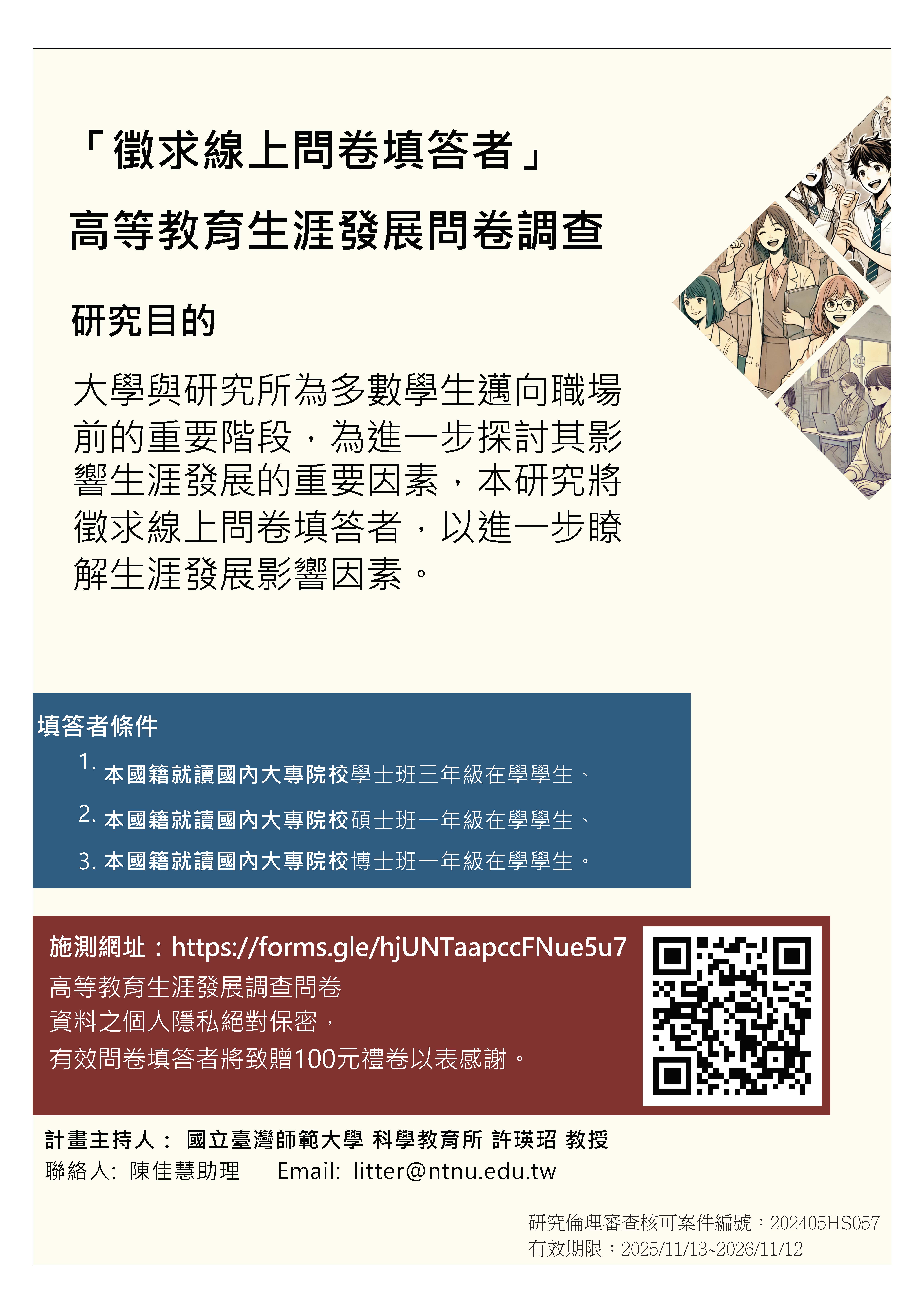 【國立臺灣師範大學】高等教育生涯發展調查問卷線上問卷調查