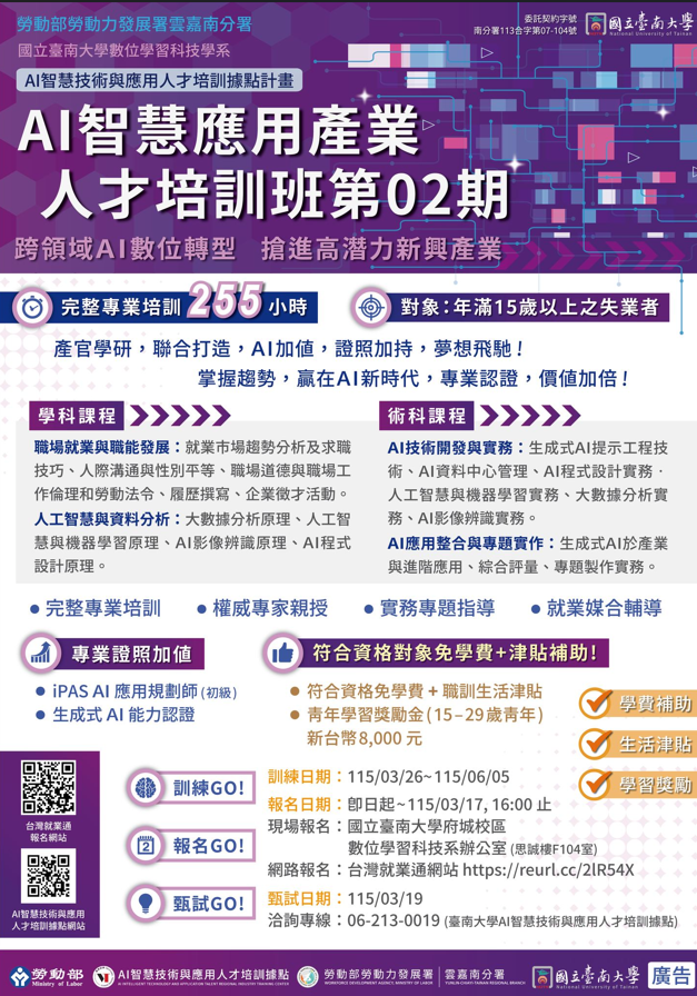 (一)訓練班別:AI智慧應用產業人才培訓班第02期。